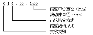 ⑴--回轉(zhuǎn)支承類別 HSW:外齒式單排球式 HSN:內(nèi)齒式單排球式 ⑵--滾道中心直徑,mm ⑶--滾動體直徑,mm ⑷--齒輪模數(shù)分類代號 A:大模數(shù),不帶A表示小模數(shù) 型號標記示例: 單排球式,大模數(shù)外齒,滾道中心直徑為1250mm,滾動體直徑為40mm的 回轉(zhuǎn)支承,產(chǎn)品型號標記如下: 回轉(zhuǎn)支承 HSW1250.40A JG/T66-1999 |